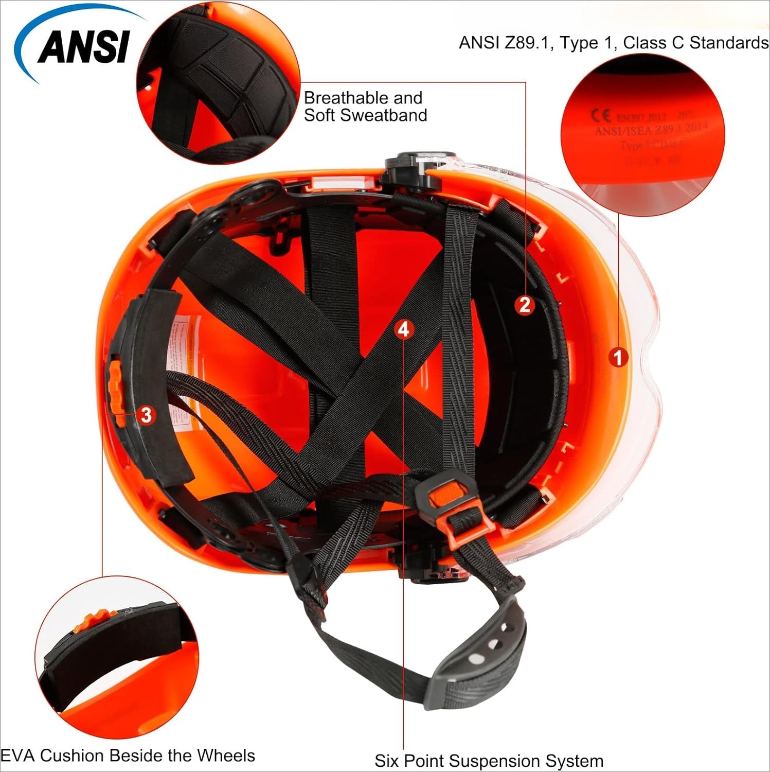 • MEETING STANDARDS: The goggle meets with ANSI/ISEA Z87.1-2020, The hard hat meets with ANSI/ISEA Z89.1-2014, Type I, Class C. The descriptions of the standard are printed on the hard hat or goggle.