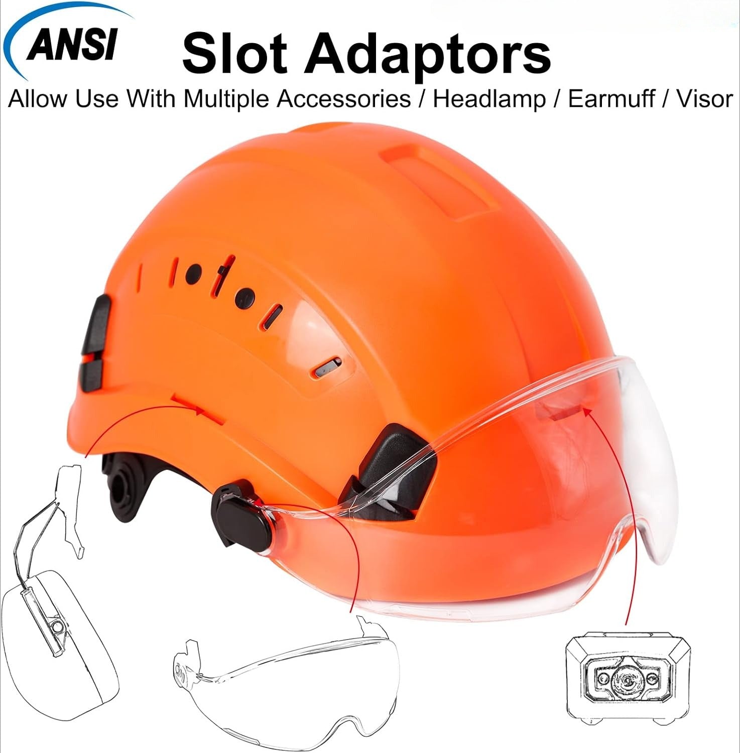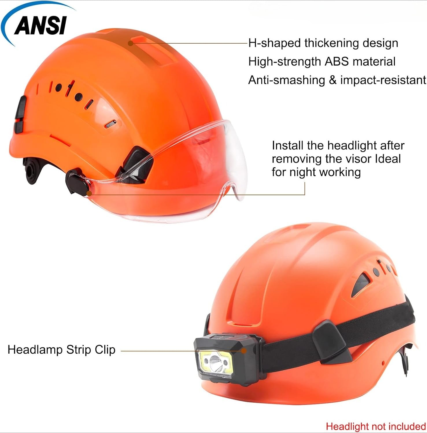 • HIGH QUALITY MATERIAL: The outer shell of the hard hat is made by strong ABS material. It has high impact resistance and can keep your head safe when you in the construction site. The goggle of the hard hat is made by qualified plastic material. You will seize a good view when it was pulled down.