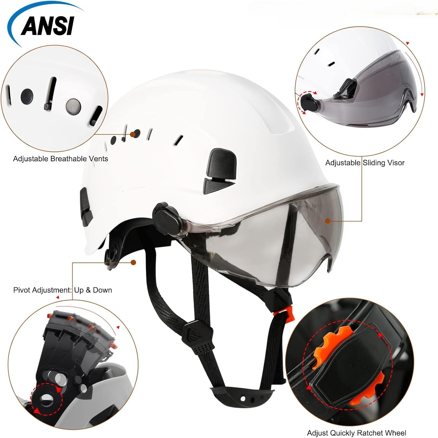 Safety Hard Hat with EPS Foam ANSI Z89.1 Approved ABS Helmet Retractable Visor SF-06B